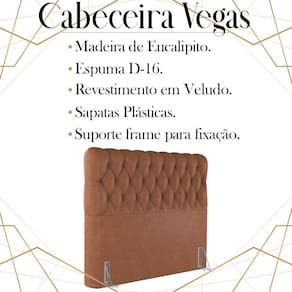 Cabeceira Casal 138 cm Vegas Veludo, é a escolha certa para você que busca conforto e modernidade, tornando o seu quarto muito mais versátil e sofisticado. Estrutura em madeira de eucalipto, que oferece maior durabilidade ao produto. Composta por revestimento em tecido veludo, conta com espuma D-16 de altíssima qualidade, sapatas plásticas e acompanha frames para facilitar a fixação no box, é ideal para colchão Casal de 138 cm. Com design que proporciona elegância, charme e luxuosidade ao seu quarto. Este móvel chegará na sua casa separado em 01 volume.