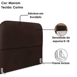 Madeira (Eucalipto), espuma e tecido.Cabeceira Casal Alana, moderna e aconchegante trazendo o design orgânico para seu quarto! Estrutura em Madeira de Eucalipto (reflorestada), estofada em espuma (densidade D-18) e revestida em tecido Corino (material sintético que lembra couro) com bordas curvas. Incluso Frame (metal resistente com reforço lateral e acabamento em pintura epóxi) para fixação em camas Box e sapatas plásticas. Este produto será entregue em 1 volume.