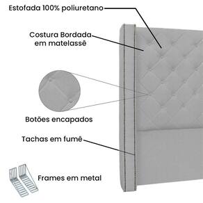 A cabeceira Vicenza nos traz o estilo neoclássico, o deslumbre imperial do conforto e beleza. Visual moderno e sofisticado com o tamanho perfeito para o seu quarto. produzida com materiais de primeira linha, botões forrados no tecido com costura bordada que fazem dela uma obra de arte no seu quarto.