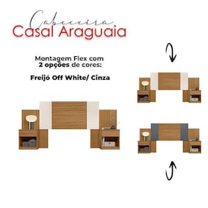 Está procurando móveis para montar seu quarto? Apresentamos para você esta bela cabeceira da linha Araguaia. Perfeita para colchões de 138cm e 158cm de largura. O destaque fica por conta das mesas de cabeceiras embutidas, otimizando o espaço. Cada uma possui uma gaveta equipada com corrediças telescópicas, além de um nicho, perfeito para acomodar seus livros e acessórios. Um dos grandes diferenciais é a possibilidade da opção de duas cores na hora da montagem: freijó off white/ cinza, permitindo que personalize conforme o seu gosto. Fabricado pela Moval, é desenvolvido em MDP de alta qualidade, sendo uma excelente escolha para quem busca sofisticação e organização no quarto, aproveite!