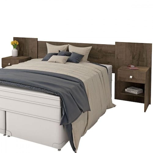 Cabeceira Casal Belgic Com Mesa 2 Gavetas Atualle Móveis Mocaccino Rústico
