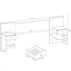 Cabeceira Casal Belgic com Mesa de Cabeceira 2 Gavetas Atualle Moveis
