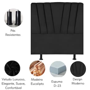 Cabeceira Casal Box de Cama Estofada 140 cm Antonella Veludo - Preto