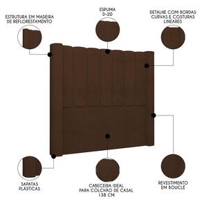 Elemento fundamental para compor a decoração do quarto de casal e, ainda, desempenhar funcionalidade que vai além do estético, a Cabeceira Casal Cama 140cm Claire I02 Bouclê Marrom, da Mpozenato, vai te surpreender do começo ao fim.