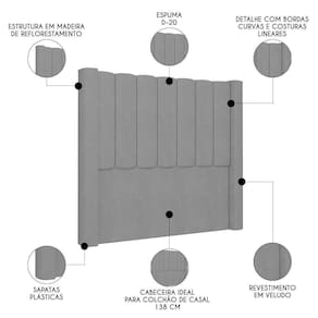 Elemento fundamental para compor a decoração do quarto de casal e, ainda, desempenhar funcionalidade que vai além do estético, a Cabeceira Casal Cama Box 140cm Claire Z04 Veludo Cinza, da Mpozenato, vai te surpreender do começo ao fim.