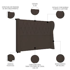 Cabeceira Casal Cama Box 140cm Malva I02 Veludo Marrom - Mpozenato