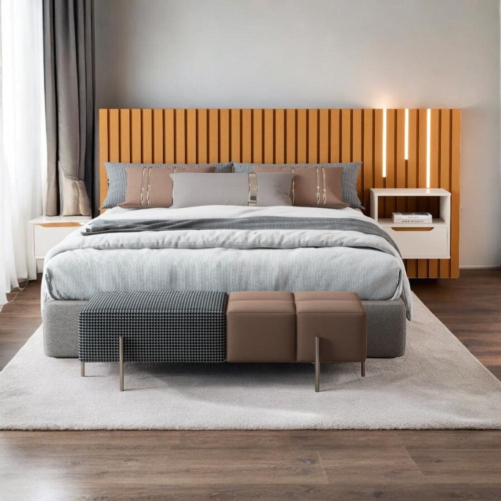 Cabeceira Ripada Cama Casal com 1 Mesa Turim Nature Pérola