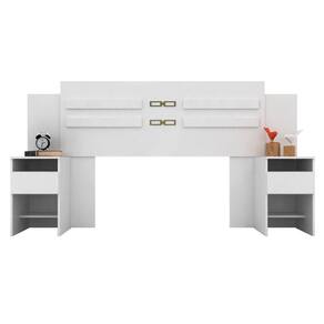 Para deixarCabeceira ainda mais linda, ela vem acompanhada com duas mesas de cabeceira onde cada uma possui um nicho, uma gaveta e prateleira facilitando a organização de pequenos pertences ao lado da cama na hora do descanso, deixando seuquarto com uma decoração maravilhosa!