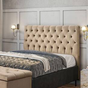A Cabeceira Cristal é tapeçada com espuma de poliuretano e revestimento em tecido suede amassado, botões revestidos em tecido do mesmo revestimento e ainda possui detalhes com botões que imitam o strass que deixam o produto mais atrativo e dando um toque de charme.
