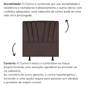 Fabricada com materiais de alta qualidade, como madeira eucalipto e revestimento em corino, esta cabeceira é durável e resistente, garantindo não apenas estilo, mas também funcionalidade para o seu ambiente.