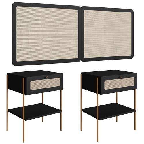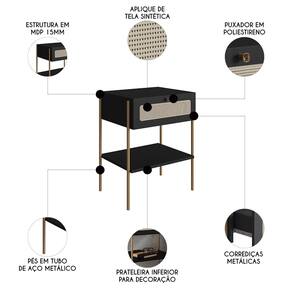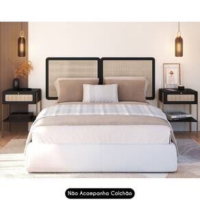 A Cabeceira Queen Com 2 Mesas Laterais Arlo A10 Nero/Dourado, da Mpozenato, destaca-se por sua combinação de conforto e estilo, ideal para complementar o ambiente de descanso.