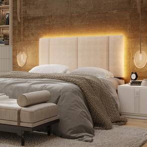 Cabeceira Casal Estofada com LED: Sofisticação e Conforto para seu Quarto