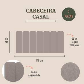 CONFIRA ABAIXO MAIS DETALHES SOBRE O PRODUTO: Tamanho Casal (7 placas): 140cm (comprimento total) x 60cm (altura) x 3 cm (profundidade). Altura de cada placa: 60 cm Largura de cada placa: 20cm Materiais: 100% MDF; Espuma; Fita 3M; Cores e Tecidos: temos 25 variações de cores e tecidos. Escolha a que você mais gosta.