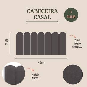 CONFIRA ABAIXO MAIS DETALHES SOBRE O PRODUTO: Tamanho Casal (7 placas): 140cm (comprimento total) x 60cm (altura) x 3 cm (profundidade). Altura de cada placa: 60 cm Largura de cada placa: 20cm Materiais: 100% MDF; Espuma; Fita 3M; Cores e Tecidos: temos 25 variações de cores e tecidos. Escolha a que você mais gosta.