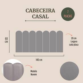 CONFIRA ABAIXO MAIS DETALHES SOBRE O PRODUTO: Tamanho Casal (7 placas): 140cm (comprimento total) x 60cm (altura) x 3 cm (profundidade). Altura de cada placa: 60 cm Largura de cada placa: 20cm Materiais: 100% MDF; Espuma; Fita 3M; Cores e Tecidos: temos 25 variações de cores e tecidos. Escolha a que você mais gosta.