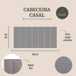 Tamanho Casal (7 placas): 140cm (comprimento total) x 60cm (altura) x 3 cm (profundidade).