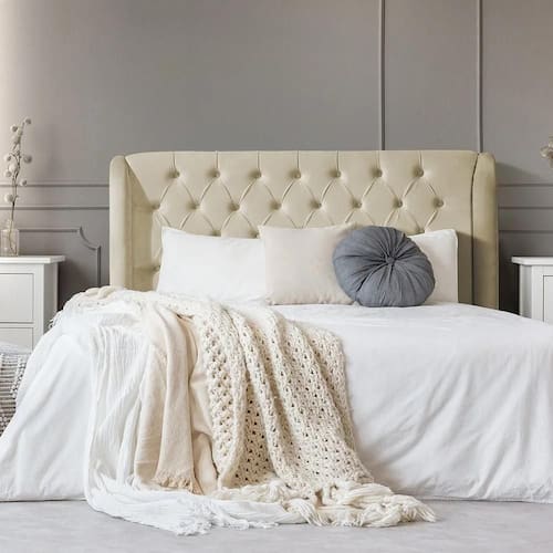 Cabeceira Casal Bege, Cabeceira Londres, Cabeceira Estofada Veludo Bege, Cabeceira para Cama Box Casal, Arte Estofados, Cabeceira 140x153, Cabeceira Moderna Bege