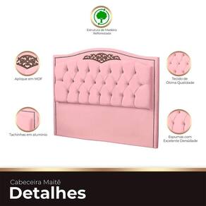 Transforme seu quarto em um refúgio de luxo com nossa cabeceira estofada Maitê para cama box casal. Com um design estiloso e moderno, ela adiciona um toque romântico e sofisticado ao ambiente. Os detalhes em tachinha de alumínio e o aplique em MDF elevam o padrão de elegância. Além disso, os delicados botões encapados com tecido na cor do móvel são o toque final que você estava procurando. Experimente o conforto e o charme que só uma cabeceira assim pode oferecer. Transforme seu quarto em um verdadeiro oásis de beleza e estilo!