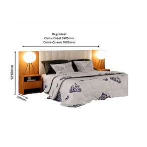Cabeceira casal expansível para colchões de 138 e 158, com painel estofado, 02 mesas de cabeceira e gavetas com corrediças telescópicas e nichos. Cabeceira moderna e com qualidade ideal para o seu quarto.