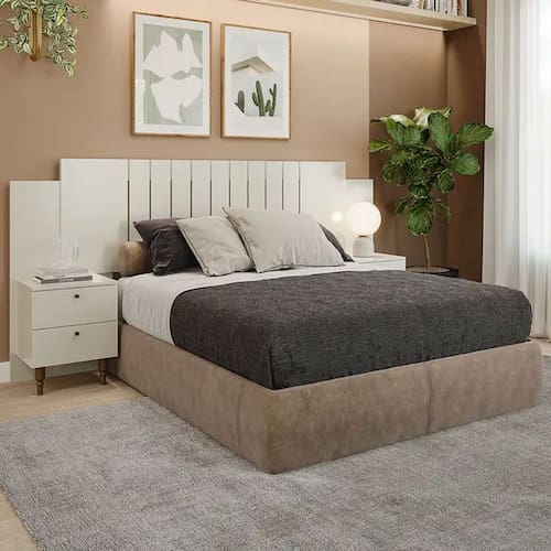 Sua estrutura toda em MDF e seu acabamento em Pintura UV, garantem a durabilidade e qualidade do produto. Alem disso, suas mesas possui duas gavetas cada com corredicas telescopicas, o que permite um deslizar mais suave da gaveta. E mais! Ela e extensivel, se adaptando em colchoes de casal com medidas de 138 cm e 158 cm.