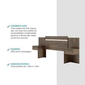 A Cabeceira Carraro é a peça ideal para fazer a diferença no ambiente. Com detalhe reversível é perfeita para trazer um toque de modernidade e sofisticação para o quarto, seu tom madeirado consegue combinar facilmente com diversas decorações e suas gavetas embutidas facilitam a rotina, permitindo manter objetos em fácil alcance. Além disso, ela possui sustentação própria dispensando a necessidade de ser fixada na parede.
