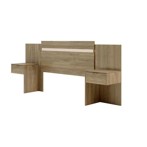 Cabeceira Casal Extensível e Mesa Lateral Madeirado Claro e OFF White Carraro