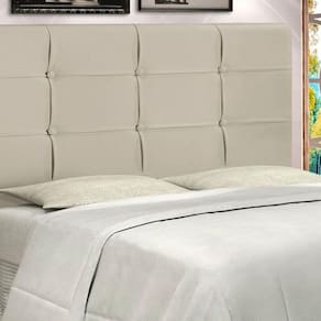 Cabeceira para cama produzidas com madeira tratada de fixadas com garmpos galvanizados não permitindo a oxidação, espuma em densidade 16 testadas periodicamente em laboratório garantindo a funcionalidade e qualidade, tecido suede dublado reforçado detalhes em captonê em forma de quadrados em acabamentos de botões revestidos pelo próprio tecido, pés em madeira eucalipto tratado e reflorestado, semi frames para fixação diretamente na cama box.