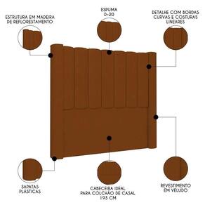 Elemento fundamental para compor a decoração do quarto de casal e, ainda, desempenhar funcionalidade que vai além do estético, a Cabeceira Casal King Cama 195cm Claire I02 Veludo Terracota, da Mpozenato, vai te surpreender do começo ao fim.