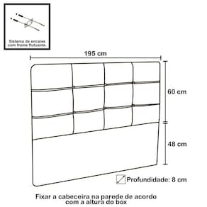Cabeceira Casal King Cama Box 195 cm London Cinza, produto com estrutura interna produzida com madeira de eucalipto ecologicamente correta, tapeçada com espuma D-12, revestida em suede e possui sistema de fixação com frame flutuante que é uma única junção metálica que fixa o produto à parede. Acompanha sapatas e é compatível para colchões de cama Box de 195 cm de largura. Deixe seu quarto mais bonito e confortável com essa linda cabeceira. Confira e aproveite!