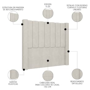 Elemento fundamental para compor a decoração do quarto de casal e, ainda, desempenhar funcionalidade que vai além do estético, a Cabeceira Casal King Cama Box 195cm Claire I02 Veludo Bege, da Mpozenato, vai te surpreender do começo ao fim.
