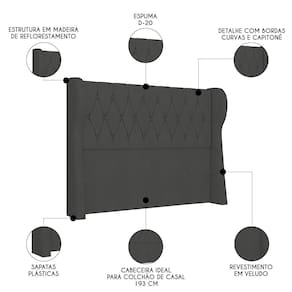 Dona de um design exuberante, digno de páginas de decoração, a Cabeceira Casal King Cama Box 160cm Malva Z04 Veludo Grafite, da Mpozenato, será o ponto alto do seu quarto de casal.