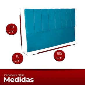 DIMENSÕES DA CABECEIRA Altura total: 122cm com pés, sem os pés 110cm; Largura total: 195cm; Profundidade total: 10cm; Altura dos pés: 12cm; Peso: 8kg;