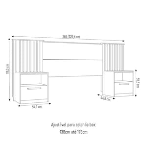 Ela é feita de MDP, um material resistente e durável, a Cabeceira é extensível e se adapta a diferentes tamanhos de colchões, seja casal, queen ou king. Além disso, a cabeceira tem um acabamento elegante com detalhes laterais em ripado, que dão um ar de sofisticação ao ambiente. Ela também conta com duas Mesas De Cabeceiras acopladas, que possuem uma gaveta com corrediças telescópicas e um nicho cada uma, perfeitas para guardar seus objetos pessoais e decorar o seu espaço. Esta é a chance de transformar o seu quarto em um lugar mais bonito e aconchegante.