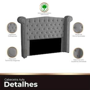 Nossa cabeceira estofada Ayla para cama box King Size é a chave para transformar seu quarto em um retiro de luxo. Seu design contemporâneo e elegante acrescenta um toque de romantismo e sofisticação ao ambiente. Os detalhes em tachinha de alumínio realçam a sensação de exclusividade, enquanto o aplique em MDF eleva o nível de requinte. Com botões delicadamente revestidos no tecido, na mesma cor do móvel, esta cabeceira é o toque final que você deseja. Descubra o conforto e o charme inigualáveis que apenas nossa cabeceira pode proporcionar. Torne seu quarto um verdadeiro oásis de beleza e estilo hoje mesmo!