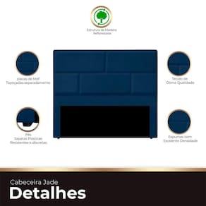 Cabeceira Casal King Size Estofada Para Cama Box Jade Veludo Cor Azul Marinho