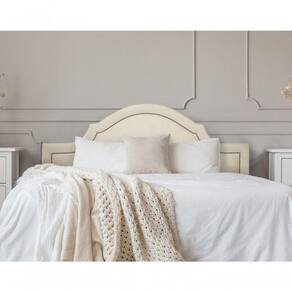 Cabeceira Casal Provençal Luxo 140x60 Suede Off White - Tachas Prata