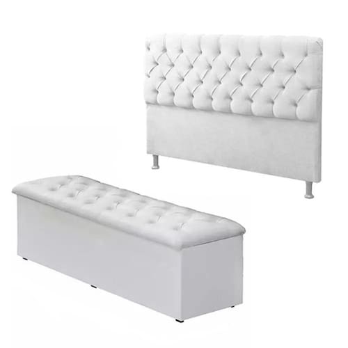 Dimensões do Produto: Cabeceira: Largura: 140 cm; Altura: 127 cm; Profundidade: 13 cm. Calçadeira Baú: Largura: 40 cm; Altura: 43 cm; Comprimento: 138 cm.