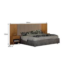 Cabeceira Casal Milano Ripado Estofado Com 2 Mesa de Cabeceira Leifer