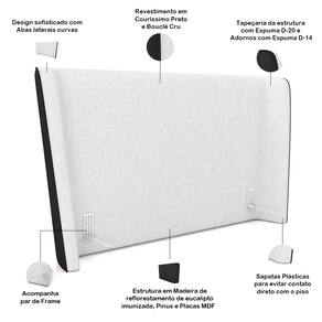 Revestimento em tecido Couríssimo de alta qualidade na cor Preto, com detalhe na cor Bouclê Cru.