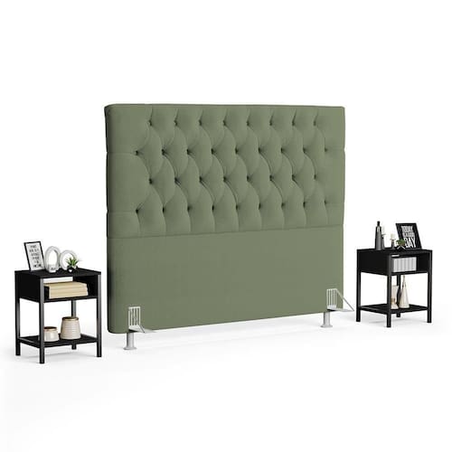 Hora de renovar o seu quarto, deixando mais moderno e prático e a Cabeceira Casal Queen 160cm Cristal Boucle Oliva e 2 Mesas Laterais Plaza LC1 Preto, da Mpozenato é o Kit ideal para você!