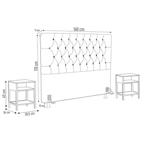 Conteúdo da Embalagem: 1 Cabeceira, 2 Mesas Laterais.