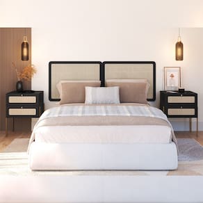 Com a Cabeceira Casal Queen 160cm e 2 Mesas Laterais 2 Gavetas Indy, da Lyam Decor, o seu quarto de casal vai se transformar em um verdadeiro refúgio de amor, aconchego e estilo.