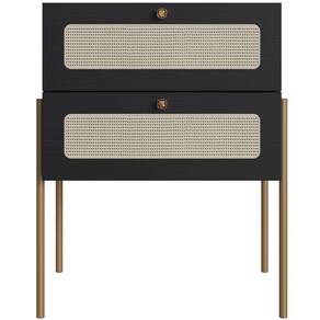 02 gavetas com corrediças metálicas simples e aplique de tela sintética (PVC com poliéster).