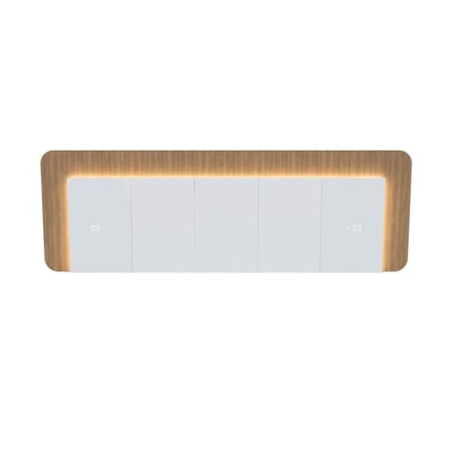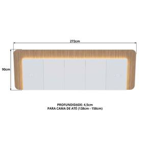 Cabeceira Casal Queen 272cm com Led 3000k e Tomadas 100% Mdf Padrão Planejados Mabel Branco/ Louro Freijó Grann - Cabeceira Casal/Queen com LED e Tomadas