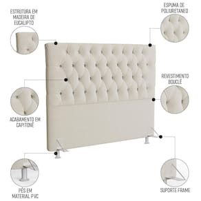 A Cabeceira Casal é uma ótima opção para quem busca conforto, beleza e qualidade. Ela é feita com madeira de Eucalipto, uma matéria-prima muito resistente, e possui um acabamento em espuma poliuretano e tecido Boucle de ótima qualidade e com detalhe em capitonê que vai deixar seu Quarto ainda mais elegante, acompanha dois pés em PVC, ideais para evitar o direto com o chão. Além disso, a Cabeceira Painel tem um design moderno e sofisticado, com costuras reforçadas e um sistema de fixação prático e , que permite que você a instale sem dificuldade fixando o frame na cabeceira e em seguida a base do no frame. Com a Cabeceira Para Cama Você vai ter um quarto mais aconchegante, organizado e charmoso.