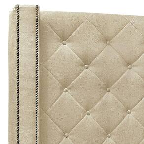 Com sua estrutura feita de madeira industrializada, espuma D23, e os frames para fixação na cama ela proporciona um suporte firme e confortável. O revestimento em linho da Cabeceira Capitonê adiciona uma textura rica e sofisticada, enquanto os detalhes em tachinhas nas laterais criam um visual clássico e atemporal. Não só serve como um ponto focal estético, mas também como uma promessa de conforto e beleza duradouros. O design da Cabeceira Estofada é pensado para complementar a decoração do quarto, adicionando um charme especial que remete à grandiosidade e ao luxo dos tempos antigos.