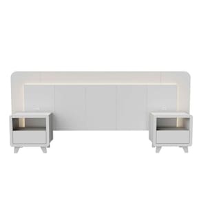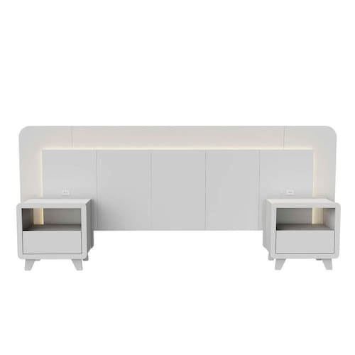 A Cabeceira Mabel Casal/Queen leva para o seu quarto o mesmo padrão de qualidade dos móveis planejados, unindo beleza, resistência e funcionalidade. Produzida em 100% MDF com revestimento BP e acabamento em fita de borda PVC 0,045cm, garante durabilidade e sofisticação, com acabamento superior típico de móveis planejados de alto padrão. O conjunto acompanha 2 mesas de cabeceira com gaveta e nicho, ideais para organizar livros, objetos e apoiar luminárias. Para o dia a dia, conta com duas tomadas embutidas (uma de cada lado), perfeitas para carregar eletrônicos. O diferencial está na fita de LED 3000K, que cria iluminação indireta aconchegante, deixando o quarto moderno e confortável. Indicada para camas de até 158 cm (Casal ou Queen), combina com móveis amadeirados, brancos ou cinza. Produto Montado: Sim Acabamento da Mesa de Cabeceira: Melamínico Altura dos Pés: 11,5 cm Altura Máxima dos Pés: 11.5000 Ambiente Principal: Quarto Cabeceira Estofada: Não codigo_ean: 7901008600939 Complexidade da Montagem: Média: pode ser montado por mais de uma pessoa e/ou necessite de maior conhecimento para montagem Cor: Branco Cor do Produto: Branco Cor Flex: Não Escala de Brilho: Fosco Escala de Brilho da Mesa de Cabeceira: Fosco Extensível: Não Fixação Box: Não Fixação na Parede: Sim Informações Complementares: Limpar somente com um pano levemente umedecido. Indicado para ambientes internos. Itens Inclusos: 1 Cabeceira, 2 Mesas de Cabeceira, Kit Ferragens e Manual de Montagem Largura do Colchão Indicado: 138cm/158cm Linha ou Coleção: Mabel Manual de Montagem e Instalação: https://product-hub-prd.madeiramadeira.com.br/961487712/documents/11d076b8-4e14-40b2-8a11-a601bdeaec6e3143850657817555220237716.pdf Marca: FD Material da Mesa de Cabeceira: MDF Material dos Pés: MDF Material Principal: MDF Montagem Flex: Não Necessita Montagem: Sim Origem do Produto: Nacional Peso: 67 kg Possui Baú: Não Possui Espelho: Não Possui Mesa de Cabeceira: 02 Possui Pés: 08 Possui Rodízio: Não Possui Possui Vidro: Não Recomendações de Uso, Manutenção e Limpeza: Limpar somente com um pano levemente umedecido. Indicado para ambientes internos Sistema de Montagem: Parafusos, cavilhas e minifix Tipo de Colchão: Casal/Queen