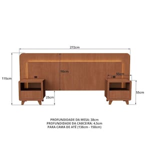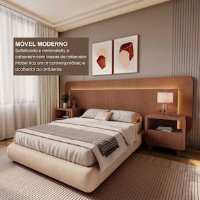 A Cabeceira Mabel Casal/Queen leva para o seu quarto o mesmo padrão de qualidade dos móveis planejados, unindo beleza, resistência e funcionalidade. Produzida em 100% MDF com revestimento BP e acabamento em fita de borda PVC 0,045cm, garante durabilidade e sofisticação, com acabamento superior típico de móveis planejados de alto padrão. O conjunto acompanha 2 mesas de cabeceira com gaveta e nicho, ideais para organizar livros, objetos e apoiar luminárias. Para o dia a dia, conta com duas tomadas embutidas (uma de cada lado), perfeitas para carregar eletrônicos. O diferencial está na fita de LED 3000K, que cria iluminação indireta aconchegante, deixando o quarto moderno e confortável. Indicada para camas de até 158 cm (Casal ou Queen), combina com móveis amadeirados, brancos ou cinza. Produto Montado: Sim Acabamento da Mesa de Cabeceira: Melamínico Altura dos Pés: 11,5 cm Altura Máxima dos Pés: 11.5000 Ambiente Principal: Quarto Cabeceira Estofada: Não codigo_ean: 7901008600977 Complexidade da Montagem: Média: pode ser montado por mais de uma pessoa e/ou necessite de maior conhecimento para montagem Cor: Castanho Cor do Produto: Castanho Cor Flex: Não Escala de Brilho: Fosco Escala de Brilho da Mesa de Cabeceira: Fosco Extensível: Não Fixação Box: Não Fixação na Parede: Sim Informações Complementares: Limpar somente com um pano levemente umedecido. Indicado para ambientes internos. Itens Inclusos: 1 Cabeceira, 2 Mesas de Cabeceira, Kit Ferragens e Manual de Montagem Largura do Colchão Indicado: 138cm/158cm Linha ou Coleção: Mabel Manual de Montagem e Instalação: https://product-hub-prd.madeiramadeira.com.br/139879808/documents/45440dc0-3b9c-4acf-8a48-90e0457ac6b13143805657817555216140392.pdf Marca: FD Material da Mesa de Cabeceira: MDF Material dos Pés: MDF Material Principal: MDF Montagem Flex: Não Necessita Montagem: Sim Origem do Produto: Nacional Peso: 67 kg Possui Baú: Não Possui Espelho: Não Possui Mesa de Cabeceira: 02 Possui Pés: 08 Possui Rodízio: Não Possui Possui Vidro: Não Recomendações de Uso, Manutenção e Limpeza: Limpar somente com um pano levemente umedecido. Indicado para ambientes internos Sistema de Montagem: Parafusos, cavilhas e minifix Tipo de Colchão: Casal/Queen