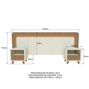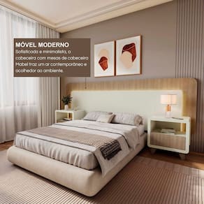 A Cabeceira Mabel Casal/Queen leva para o seu quarto o mesmo padrão de qualidade dos móveis planejados, unindo beleza, resistência e funcionalidade. Produzida em 100% MDF com revestimento BP e acabamento em fita de borda PVC 0,045cm, garante durabilidade e sofisticação, com acabamento superior típico de móveis planejados de alto padrão. O conjunto acompanha 2 mesas de cabeceira com gaveta e nicho, ideais para organizar livros, objetos e apoiar luminárias. Para o dia a dia, conta com duas tomadas embutidas (uma de cada lado), perfeitas para carregar eletrônicos. O diferencial está na fita de LED 3000K, que cria iluminação indireta aconchegante, deixando o quarto moderno e confortável. Indicada para camas de até 158 cm (Casal ou Queen), combina com móveis amadeirados, brancos ou cinza. Produto Montado: Sim Acabamento da Mesa de Cabeceira: Melamínico Altura dos Pés: 11,5 cm Altura Máxima dos Pés: 11.5000 Ambiente Principal: Quarto Cabeceira Estofada: Não codigo_ean: 7901008600960 Complexidade da Montagem: Média: pode ser montado por mais de uma pessoa e/ou necessite de maior conhecimento para montagem Cor: Off White / Louro Freijó Grann Cor do Produto: Off White / Louro Freijó Grann Cor Flex: Não Escala de Brilho: Fosco Escala de Brilho da Mesa de Cabeceira: Fosco Extensível: Não Fixação Box: Não Fixação na Parede: Sim Informações Complementares: Limpar somente com um pano levemente umedecido. Indicado para ambientes internos. Itens Inclusos: 1 Cabeceira, 2 Mesas de Cabeceira, Kit Ferragens e Manual de Montagem Largura do Colchão Indicado: 138cm/158cm Linha ou Coleção: Mabel Manual de Montagem e Instalação: https://product-hub-prd.madeiramadeira.com.br/900365536/documents/f4078eee-0c5e-43b1-aa0d-5a47134b0c693143902657817555223120142.pdf Marca: FD Material da Mesa de Cabeceira: MDF Material dos Pés: MDF Material Principal: MDF Montagem Flex: Não Necessita Montagem: Sim Origem do Produto: Nacional Peso: 67 kg Possui Baú: Não Possui Espelho: Não Possui Mesa de Cabeceira: 02 Possui Pés: 08 Possui Rodízio: Não Possui Possui Vidro: Não Recomendações de Uso, Manutenção e Limpeza: Limpar somente com um pano levemente umedecido. Indicado para ambientes internos Sistema de Montagem: Parafusos, cavilhas e minifix Tipo de Colchão: Casal/Queen