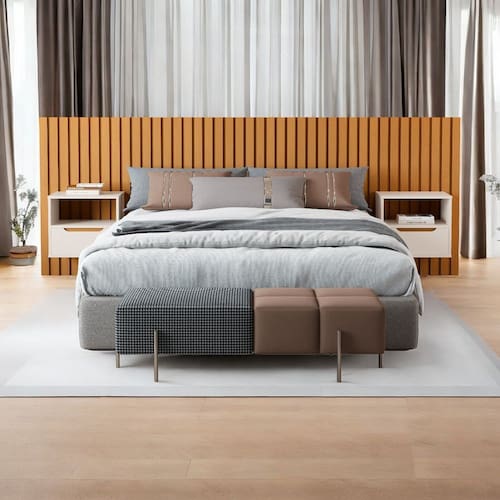 Apresentando a Cabeceira Maracá! Transforme seu quarto com a elegância desta cabeceira ripada. Com um design moderno e acabamento de alta qualidade, ela adiciona um toque de sofisticação e estilo ao ambiente. Dimensões do Produto Montado: Altura: 105 cm Largura: 267 cm Profundidade: 4 cm Itens Inclusos: - 01 Caixa com 03 módulos Maracá - 01 Caixa com 02 módulos Maracá - Cada módulo possui 54,5 cm de largura - 02 Mesas de cabeceira Jatobá na cor pérola Detalhes: - Ideal para: camas tamanho casal (1,40) ou queen (1,60) - Detalhe ripado em todo o produto - LEDs não inclusos no produto Informações adicionais: - Verifique o tamanho e os detalhes do produto antes de realizar a compra. - As fotos são meramente ilustrativas. Objetos decorativos que aparecem nas imagens não acompanham o produto. - A transportadora entregará o produto no portão e/ou portaria da residência, ou ainda, somente no andar térreo, em caso de prédios, do endereço de entrega. - Avaliar a mercadoria no ato do recebimento e recusar em caso de divergência ou danos. Marca: JB Móveis